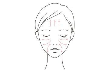 手のひら全体で顔の内側から外側に向かってやさしく引き上げながら